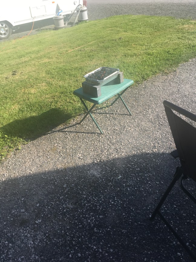 The wonderful Kevin picked me up from work at 3-45 and by 6pm all set up, wine flowing and bbq settling ready for dinner.